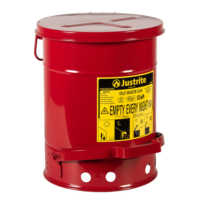 Entsorgung Ölgetränkter Lappen und Vermeidung von Bränden durch Funkenstreu oder Selbstentzündung. SoundGard™ Stil in silber oder rot, um die Geräuschunterdrückung für leise arbeitende Einstellungen zu verringern